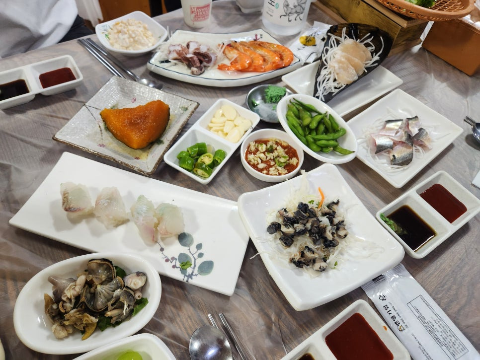 주문하자마자... 나온 스끼다시들. 회초밥, 소라? 전어, 단호박, 새우찜, 낙지, 가리비회? 콘옥수수,, 아니 이름을 다 몰라서 이해바람요ㅋ