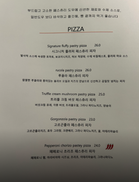 페페로니 초리조 페스츄리 피자