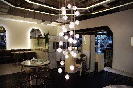 아이랑 어디 앉지? 했는데 가운데 조명이 예뻐서 가운데 앉았어요.