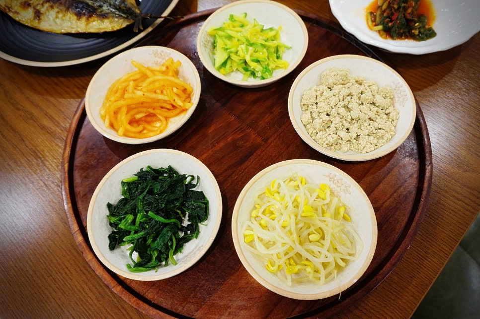 그 외에도 잡채, 양배추샐러드, 연근, 열무 등 푸짐한 반찬들로 가득했어요.