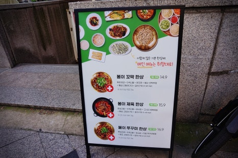 봄이한상, 세트메뉴, 그리고 사이드메뉴도 있는데요. 혼자와서 1인 메뉴 시켜먹어도 참 좋을 것 같아요. 저희는 제육 한상 2인 주문했또욤!
