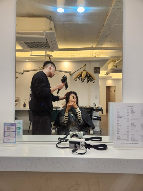 이제 마지막 드라이. 와 근데 클리닉 시간이 꽤나 걸렸어요. 이렇게 꼼꼼히 잘 해주시는 덕에 2시간 ^^ 머리 예쁘게 하고 바로 아이 픽업을 해야하는 현실을 부정하고 싶지만... ㅋㅋ