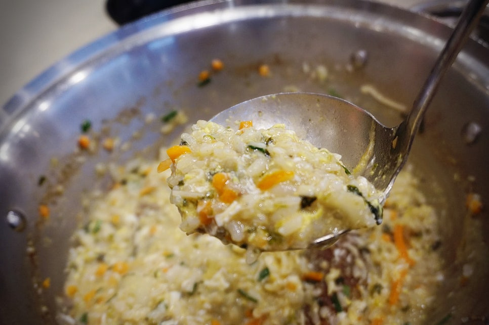 그리고 마지막 죽. 칼국수 먹는 동안 열심히 샤브 국물에 밥을 불려 계란 넣고 맛있는 죽 완성.