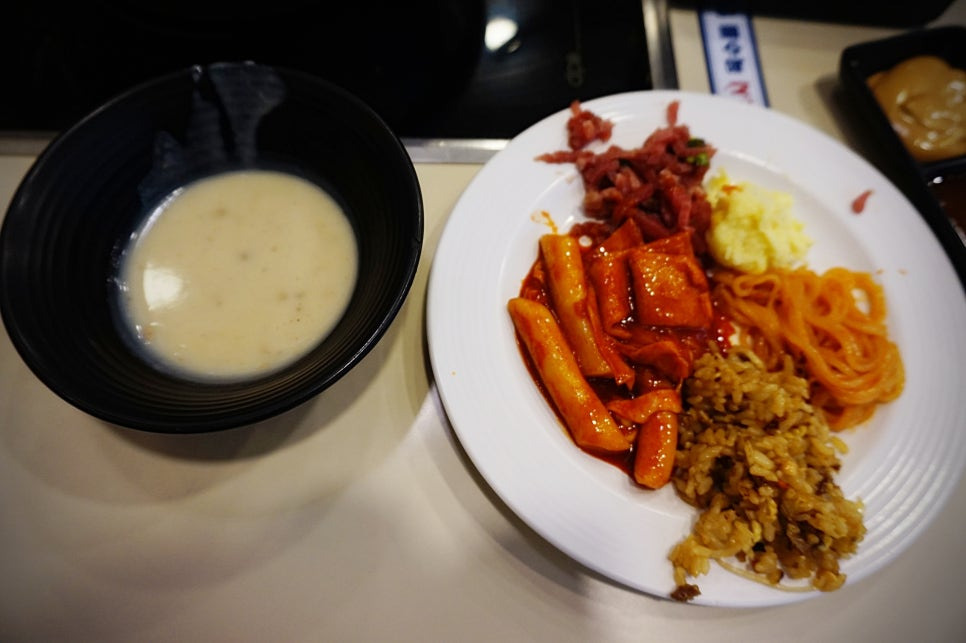 쫄면, 감자샐러드, 김치, 육회 등등 있는데 음.. 육회는 별로였어요 ㅠㅠ 쫄면은 맛있음요.ㅎㅎ