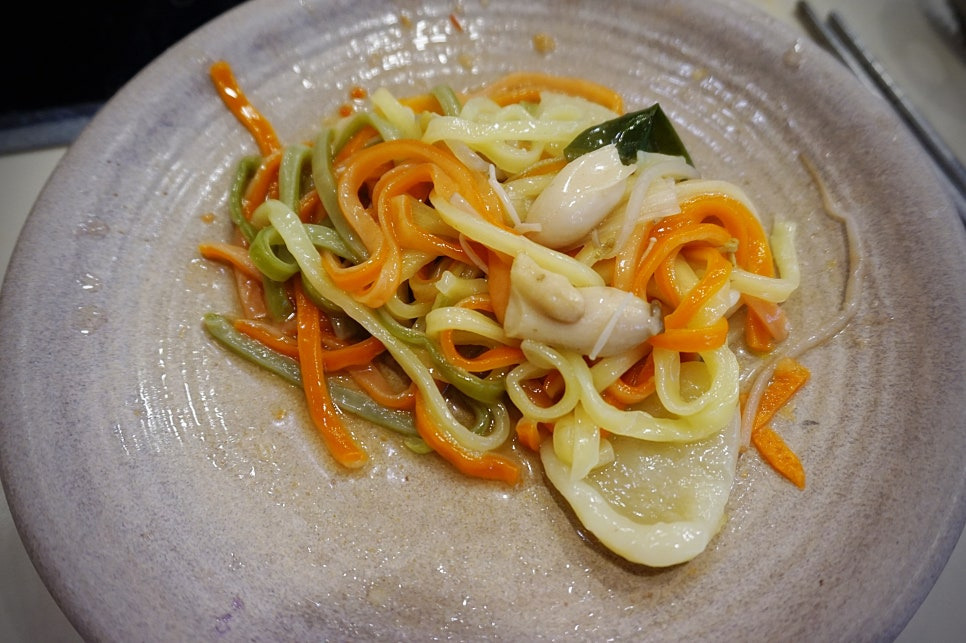 샤브 다 건져먹고, 칼국수랑 볶음밥재료를 가져와서 칼국수 먼저 먹방!! 저희 아이는 주황색 면발이 당근인 줄 알고, 안먹는다고.. 따님아.. 편식하지 말으렴 🤔