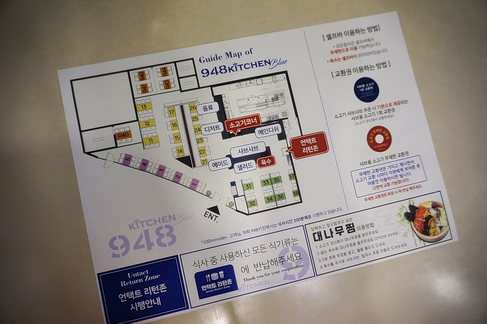 예전엔 가이드맵이 없었는데 새로 만들었나봐요. 테이블마다 있으니 참고하세요.