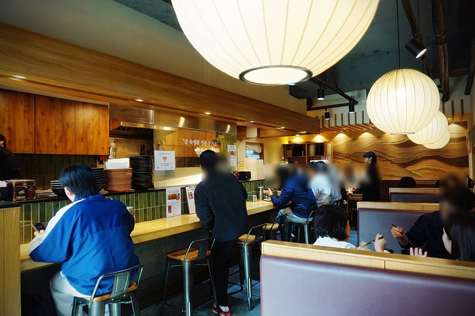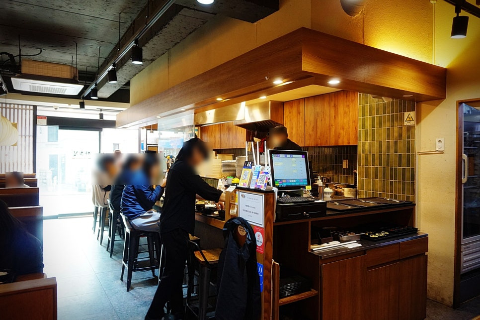 밖에서 볼때 사람들이 좀 있어서 내가 앉을 자리는 있겠지? 했는데.. 와우.. 오후 1시인데도 사람이 많더라구요..헛; 혼밥석도 있구요, 4인석 테이블도 있어요. 혼밥석에 앉으려고 했는데 자리가 없어서 큰 자리 내어주셨답니다💓