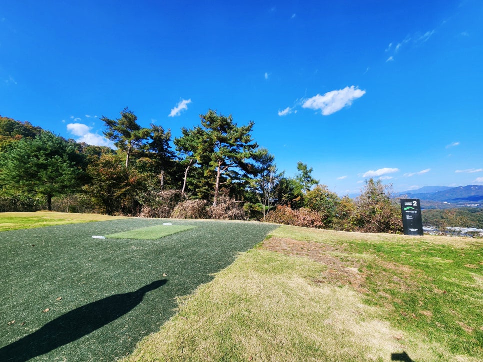 20분 정도 시간이 남아서 몸두 풀고, 퍼터 연습도 하구요. 사진도 남기고ㅋㅋ 작년에도 여기 앞에서 찍었는데ㅎㅎ 날씨가 좋으니 기분이 최고!! 낮에는 날씨가 괜찮은데, 저녁쯤 되니 추워져서.. 꼭 경량패딩 정도는 챙겨가시는게 좋을 것 같아요.