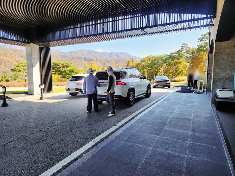 오전에 비소식이 있었는데 저희는 2시라 라운딩 할 때는 날씨가 너무 좋았어요. 클럽하우스 앞쪽에 일단 주차하시면 직원분들이 골프백을 꺼내주신답니다. 그리고 다시 주차장으로 주차하러 고고씽.