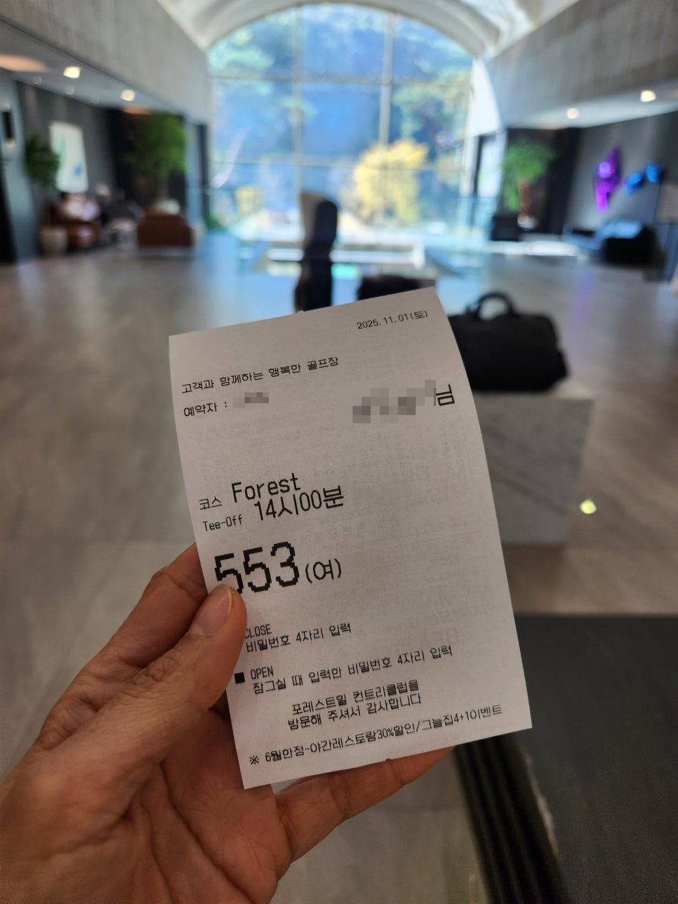 체크인하면 락커룸 번호가 나온답니다. 일단 포레스트힐cc는 사우나와 개인락커룸이 있어서 참 좋아요.