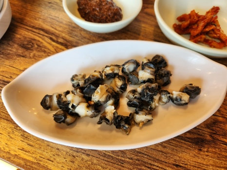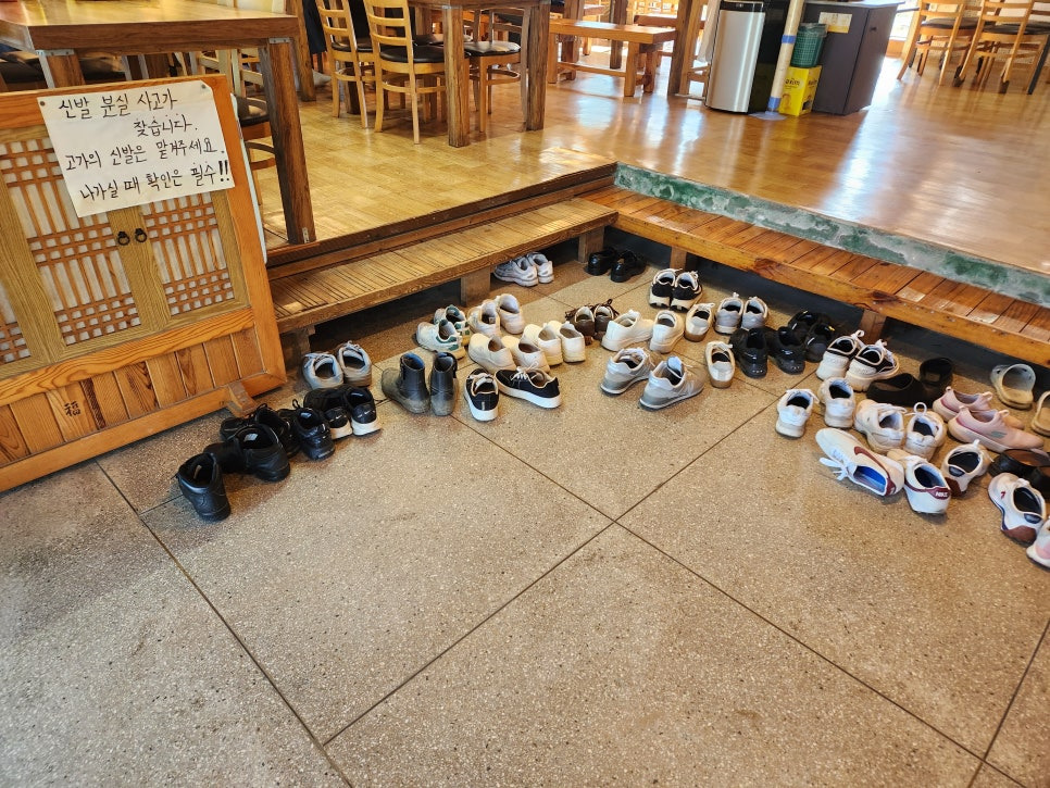 단체손님예약이 있어서 식탁에 음식들이 놓여있어서 없는 테이블에 앉았어요. 밥먹고 있는데 정말 전세버스가 갑자기 서더니 우르르 손님들이 들어와서 순식간에 시장터가😅