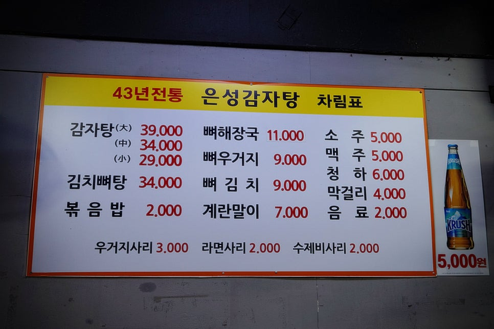 "43년 전통 은성감자탕" 주차는 따로 되지 않으니 근처 공영주차장을 이용하시면 좋을 것 같아요.