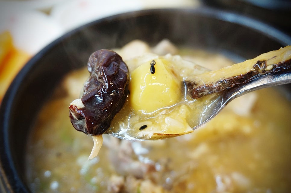 국물안에 찹쌀, 밤, 대추, 은행도 들어있어서 닭고기 다 먹고 나서 죽처럼 드실 수 있어요. 제 입맛에 딱이더라구요. 정말 맛있어요.