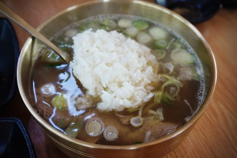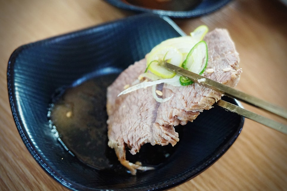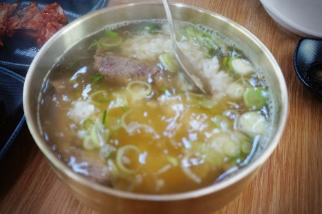 제가 원래 탕에 밥을 안 말아 먹는 편이라서 밥에다가 고기 얹어서 한 입 먹어봤는데 너무 맛있어서...