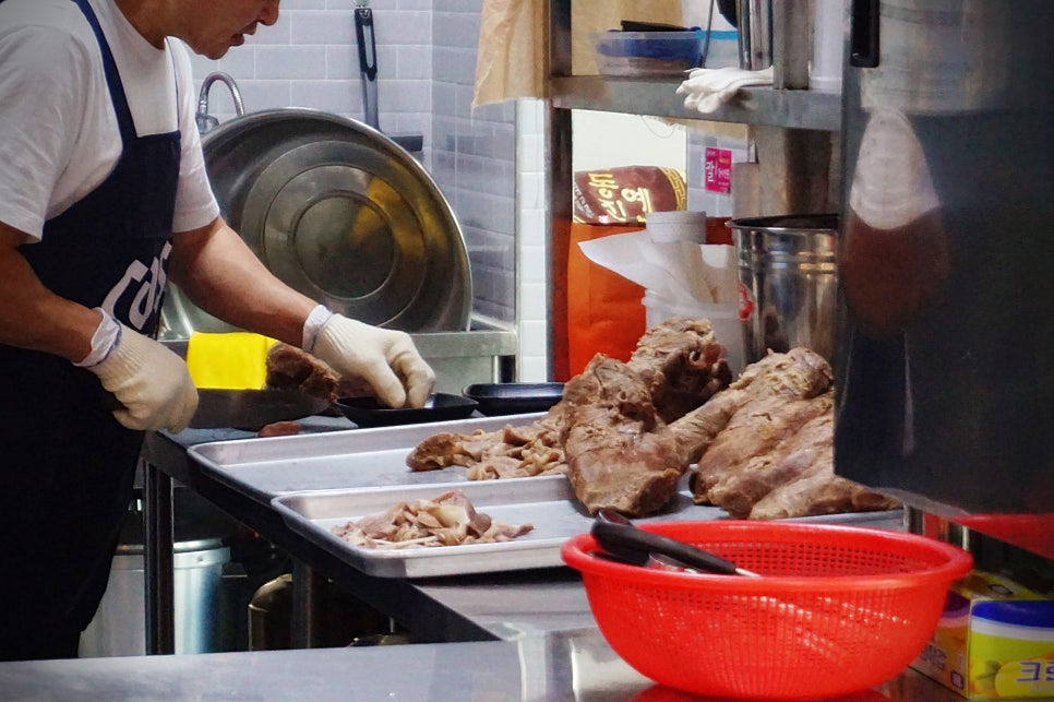 입구에 들어서니 가마솥에 육수를 우려내고 있었어요. 가마솥 찐 육수!!ㅎ