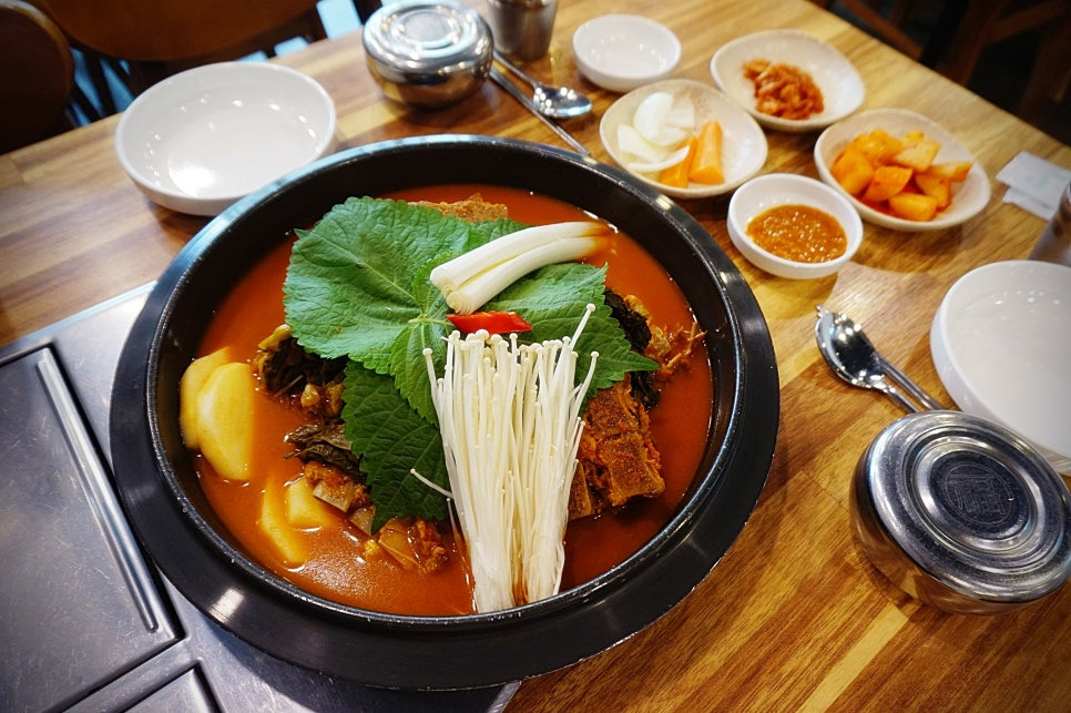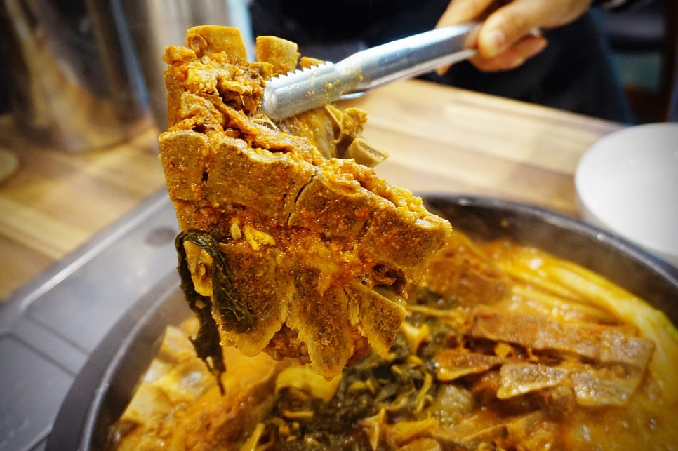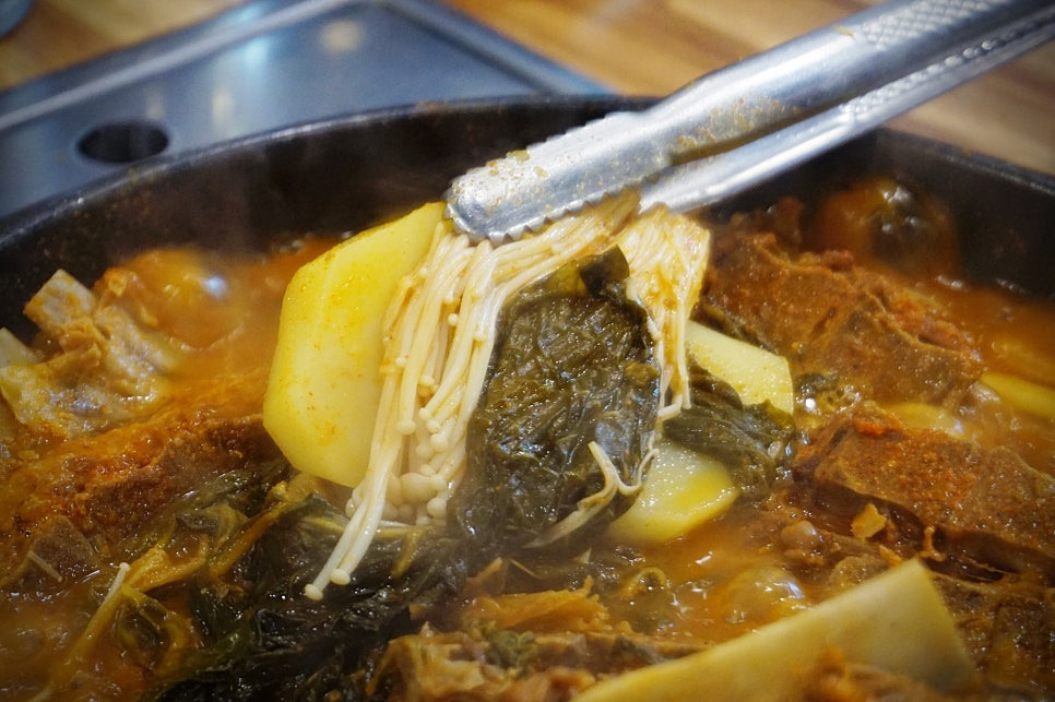 혼자오면 뼈해장국먹어도 좋을 것 같은데, 지인이랑 같이 먹기로 해서 감자탕 2인분을 주문했어요. 공기밥은 별도랍니다. 그렇지만, 뼈도 훨씬 많고, 아무래도 전골냄비에 팔팔 끓여먹는 맛이 제 맛이잖아요😁