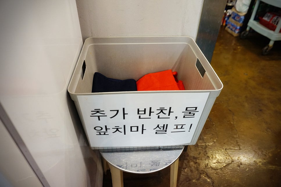 추가 반찬과 물은 셀프에요. 앞치마도요. 역시 감자탕엔 김치, 깍두기인데.. 와우 맛이 끝내줘요🙌 아삭아삭 너무 맛있었어요.