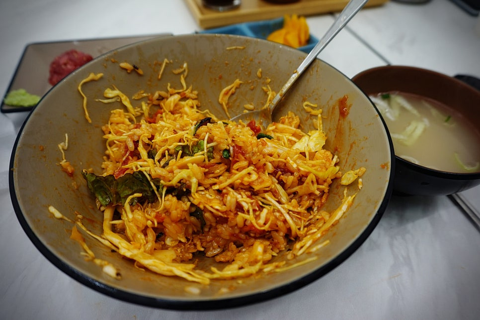 한 10분뒤에 기다리던 음식이 나왔어요!! 우왕!! 그릇도 엄청 크죠? 밥양도 많아서.. 전 좀 덜어내고 비볐어요 >.<