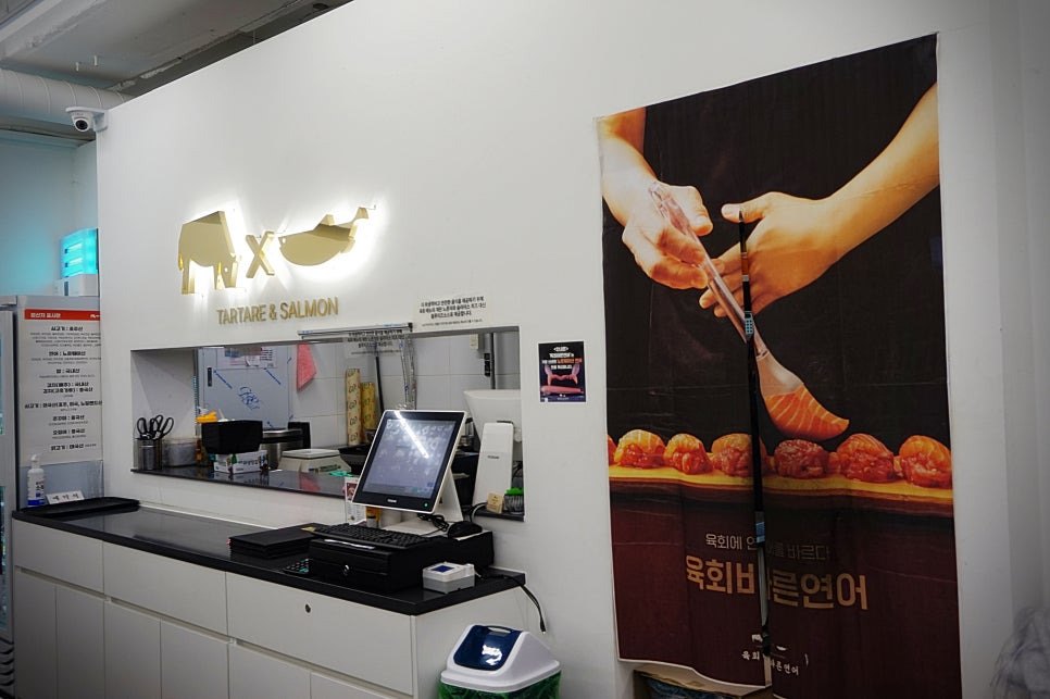 부부 사장님이신 거 같은데 두분이서 손이 참 빠르시더라구요. 배달도 엄청 많아서 라이더 분들도 계속 왔다갔다.. 홀도 많이 바뻐여. 육회 초밥위에 연어브러쉬 사진 ㅋㅋㅋ 창의적🙏