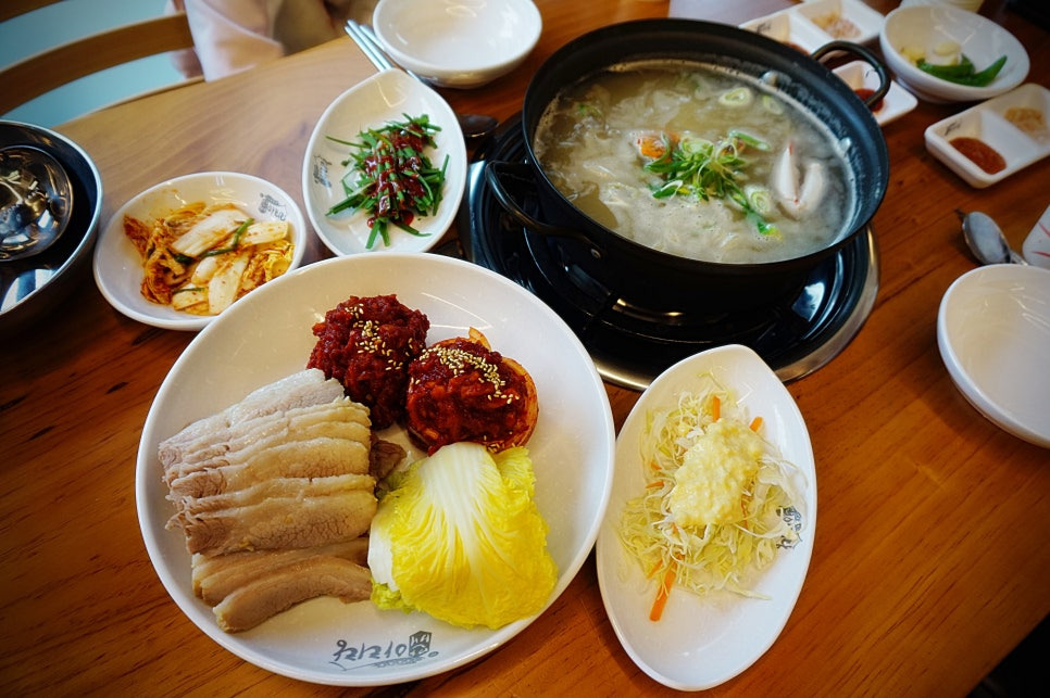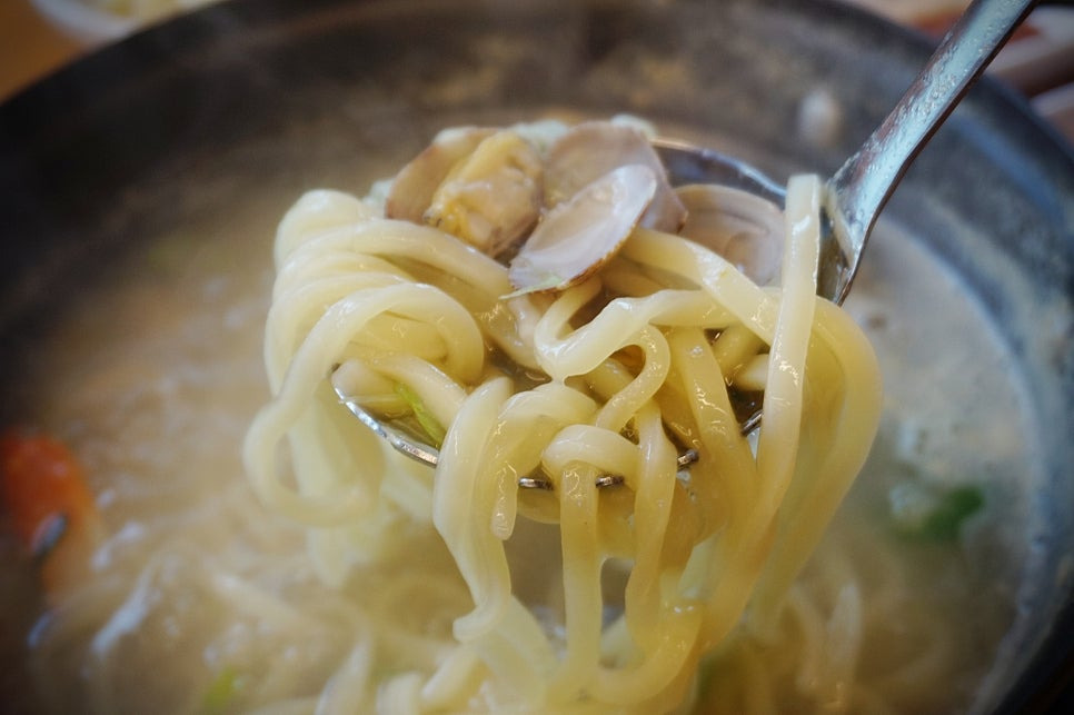 바지락이랑 꽃게가 들어있어서 시원한 육수는 말할것도 없고, 고급 밀가루만을 사용하여 밀가루 맛이 전혀 나지 않는 탱글탱글한 생면으로 제공된답니다. 3분만 끓여주면 된다고 해서 보쌈이랑 같이 맛있게 먹을 수 있었어요!!