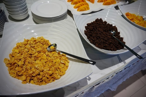 다양한 씨리얼과 우유, 식빵, 과일들도 있답니다. 이것저것 먹다보면 배가 찹니다 ㅋㅋ