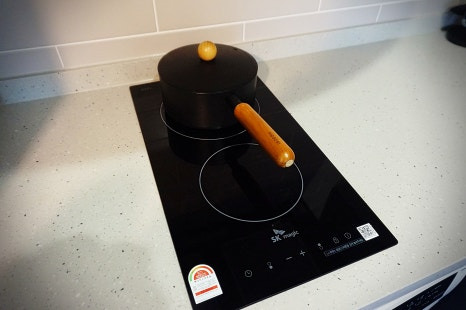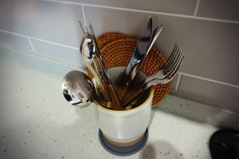 커피머신(캡슐2개), 세탁기, 전자레인지,냄비, 냉장고, 식기 등 식사를 해먹을 수 있을 정도로 구비되어 있었어요.