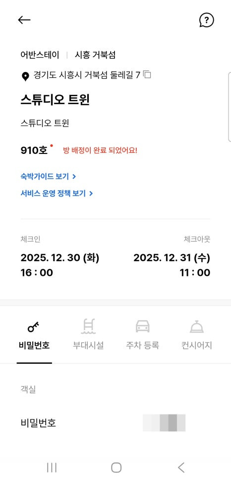 전 트립닷컴에서 예약을 했구요, 체크인 당일 어반스테이에서 카톡이 오면, 어반스테이 앱을 깔고 성인인증을 하고, 주차등록까지 마치면 끝. 주차등록을 미리 하셔야 들어갈 때 차단기가 열려요. 객실 비밀번호는 체크인 1시간 전인 오후 3시에 뜬답니다. 로비가 따로 없이 카톡으로 체크인, 체크아웃하니 불편한 것 없이 편리했어요.