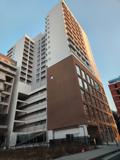 여기 건물로 들어오시면 되구요, 호텔웨이브와 어반스테이 건물 지하 주차장을 같이 쓰고 있어서 지하에 들어가셔서 꼭 "어반스테이"쪽 초록색 입구로 들어오셔서 엘레베이터 타셔야해요.