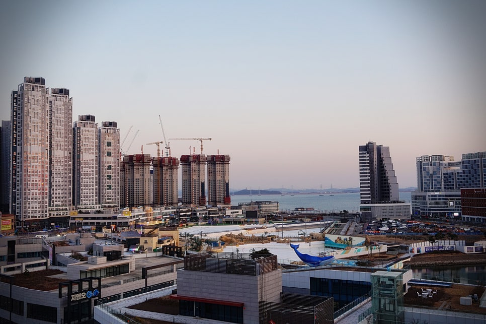 베란다 발코니에 나가서 찍어본 사진. 바다도 보이고, 웨이브파크 전경도 보이고, 여름에 서핑타시는 분들에게는 최적의 숙소네용.