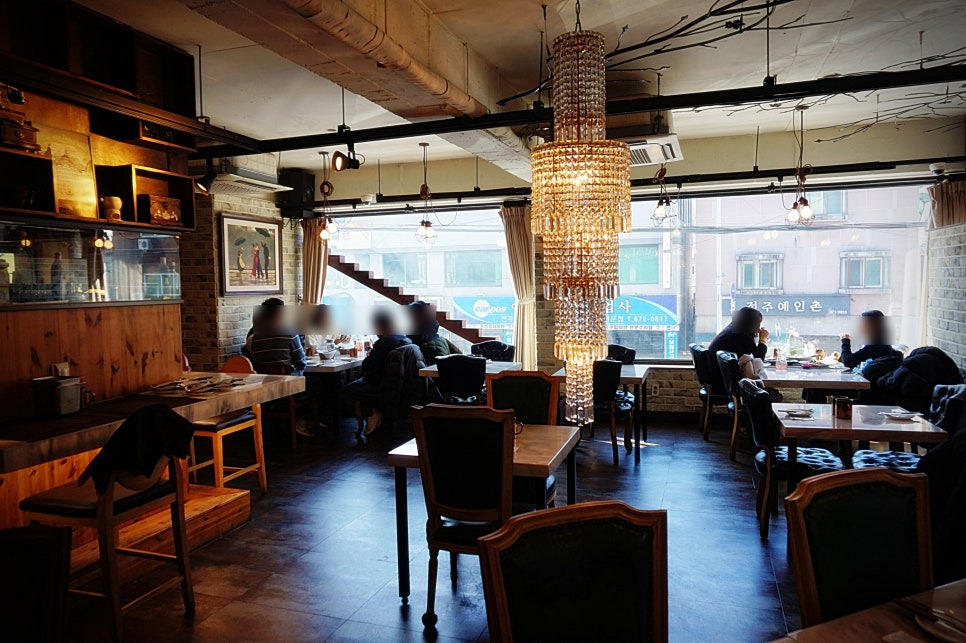 매장으로 들어가보니, 엔틱한 느낌과 중정에 화려한 샹들리에 조명이 눈에 띄였답니다. 평일 점심인데도 직장인 분들, 친구분들과 함께 즐겁게 담소 나누시는 모습들이 참 평온해보였답니다. 룸도 있고, 프라이빗하게 안쪽에 들어가 있는 테이블도 있었어요.