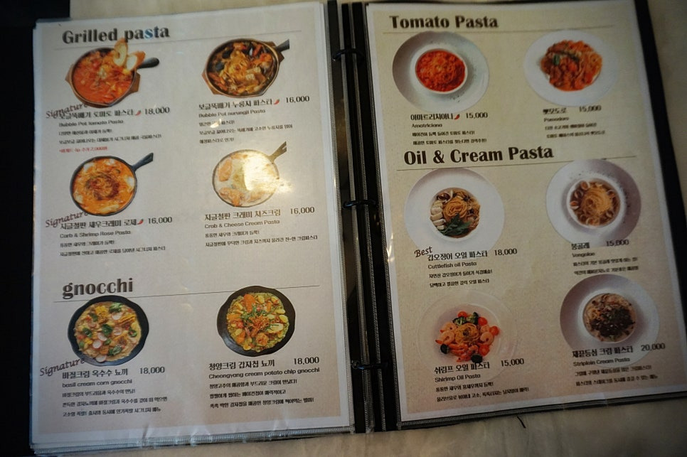 채끝등심파스타+4,000 / 바질크림 옥수수뇨끼+2,000 추가