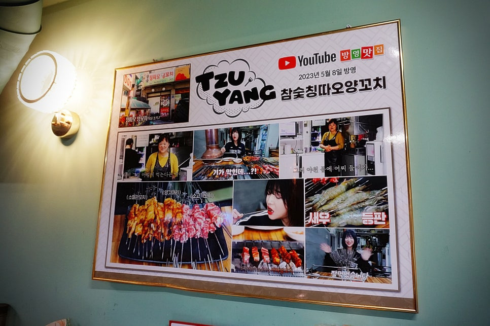 그리고 칭따오양꼬치는 쯔양 유투브에도 출연한 적이 있나봐요. 저 쯔양 팬인뎅. 여기와서 엄청 맛있게 먹고 갔나봐요. 쯔양이 인정한 양꼬치집이네요👍
