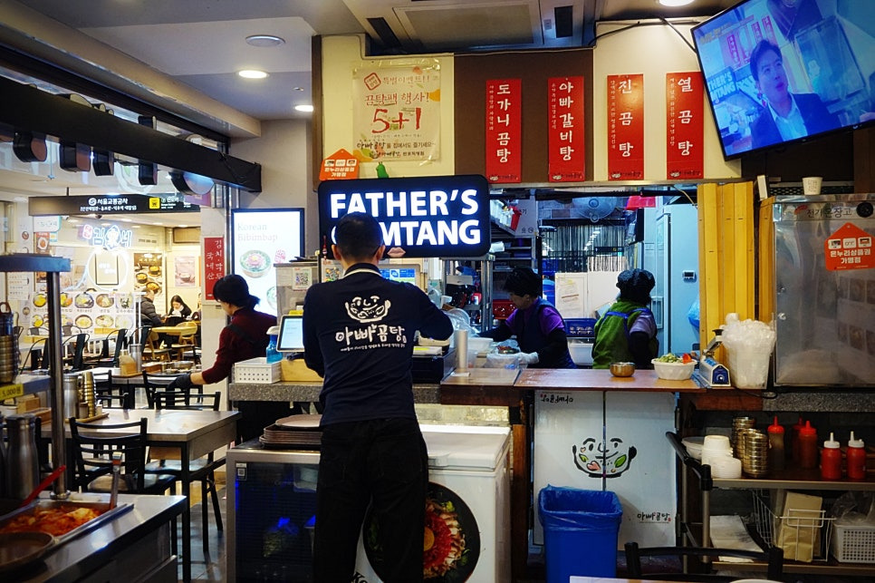 고속버스터미널 고투몰에는 동, 서쪽에 푸드코트가 있는데요. "아빠곰탕"은 꽃파는 곳 쪽으로 쭉 들어오시면 있어요.