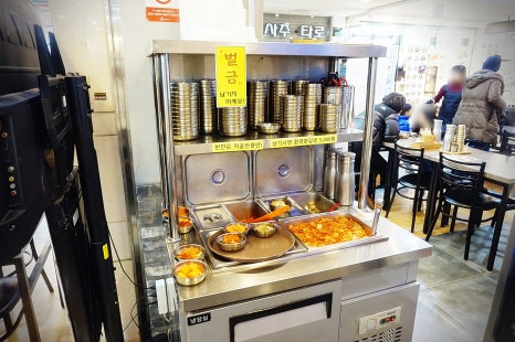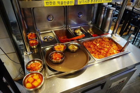 기본찬은 가져다 주시고, 모자란 음식은 셀프바에서 리필하시면 됩니다. 대신, 남기시면 벌금 5천원!!! 적당히 덜어 드시는게 좋겠쥬?ㅎ