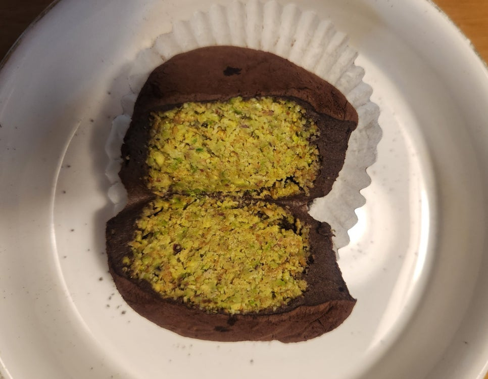 반으로 갈라보니 피스타치오 스프레드와 버터로 구운 고소한 카다이프가 😋 저의 첫 맛의 느낌은.. 너무 달았어요. 초콜릿인데 엄청 고소한 초콜릿이랄까 ㅎㅎ 하나 먹으니 두개는 못 먹겠더라구요 전 ^^ 저희 아이는 또 먹고 싶다고 해서 또 사줬다는 ㅋㅋ 유명한 두쫀쿠 후기 끝-!