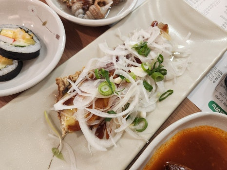 대표메뉴를 주문하면 스시 10가지 이상 서비스라고 했죵?ㅋㅋ 고등어조림, 코다리튀김, 간장게장, 어묵국, 치즈콘옥수수, 후토마끼, 알밥까지 정말 진수성찬이었어요.
