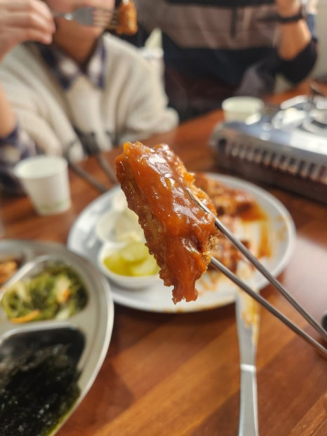 저희 딸이랑 조카는 등심돈까스를 주문했어요. 김치찌개 전문점인데 돈까스가 생각보다 맛있답니다. 에피타이저로 가족들이 하나씩 집어먹으니 금방 사라져..... 23갤 조카와 12살 저희 딸아이 최애 메뉴.