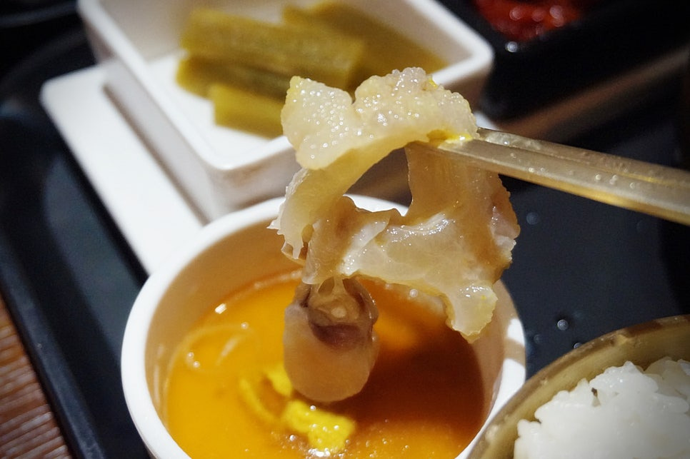 그리고 스지는 소스에 찍어먹으면 또 다른 맛을 느끼실 수 있답니다. 먹을수록 몸에 기운이 넘치는 느낌이 났답니다.ㅎ