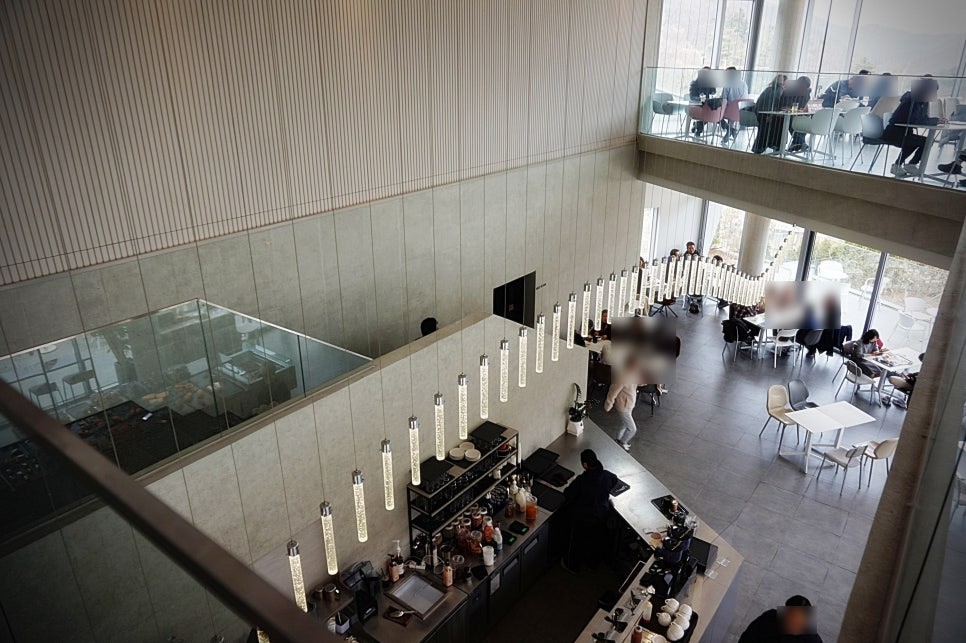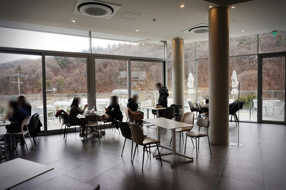 통창이라 바깥풍경들이 보이긴 합니다. 창가석에 앉고 싶었는데 자리가 없어서 저희는 2층으로 올라가기로 했어요^^