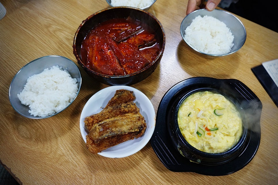 갈치조림이 제일 맛있는 것 같아요. 갈치 살도 맛있고, 저는 갈치조림국물에 밥도 비벼 먹었어요. 살도 많고, 국물도 진하고 갈치에 간도 잘 베어서 맛있어요.
