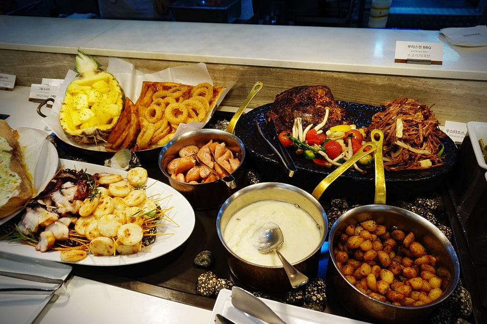 부리스컷 BBQ, 커리, 양갈비 구이 등 양갈비랑 관자놀이 구워놓은 건 정말 맛도리.