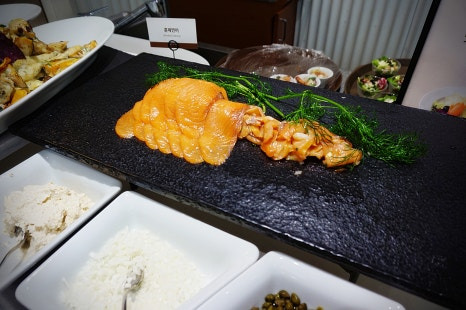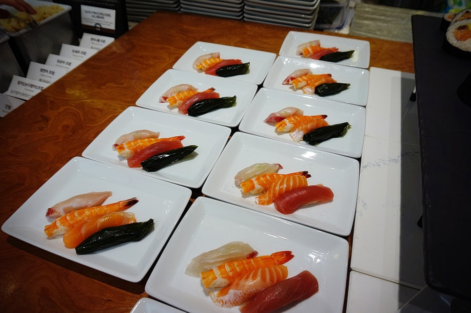 제가 좋아하는 스시 코너.ㅎㅎ 타코와사비와 활어사시미는 많이 가져다 먹었어요. 후토마끼는 배부를까봐 자제함 ㅋㅋ 한접시씩 되어 있으니 가져다 먹기도 편했어요.