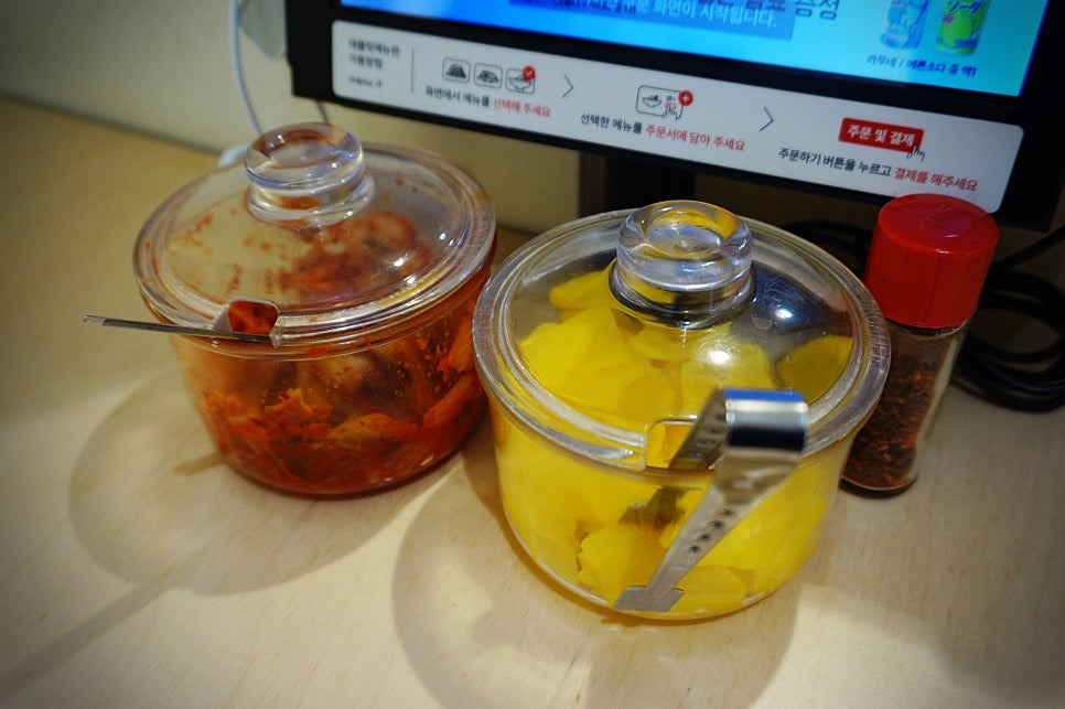 테이블에 김치와 단무지가 있구요. 초생강, 공기밥, 소스가 필요하다면 언제든 말씀해주시면 가져다 주신답니다. 직원분도 정말 친절👍