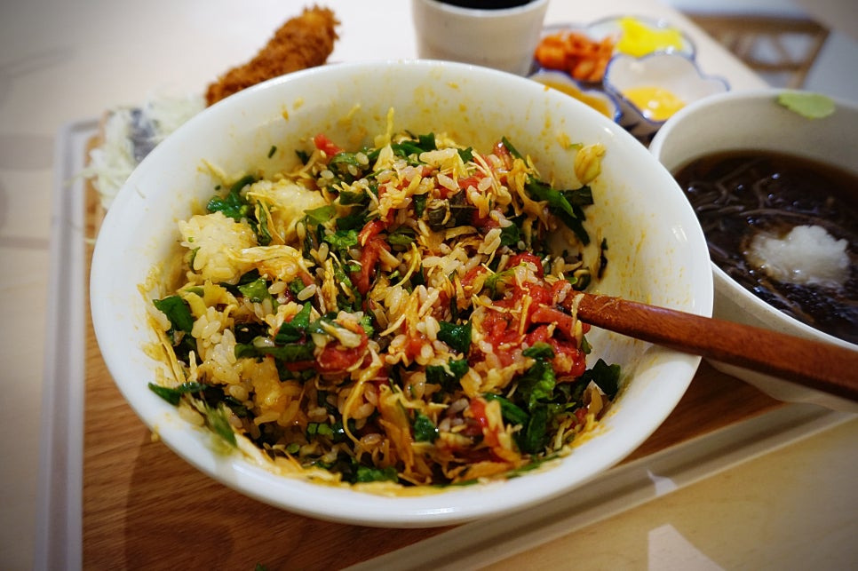 규동, 차슈동, 육회동, 수제카레 등 단순한 덮밥만 있는게 아닌 면류와 튀김류도 드실 수 있답니다. 저는 육회동정식 픽!!! 거기에 가라아게와 새우튀김도 주문😋
